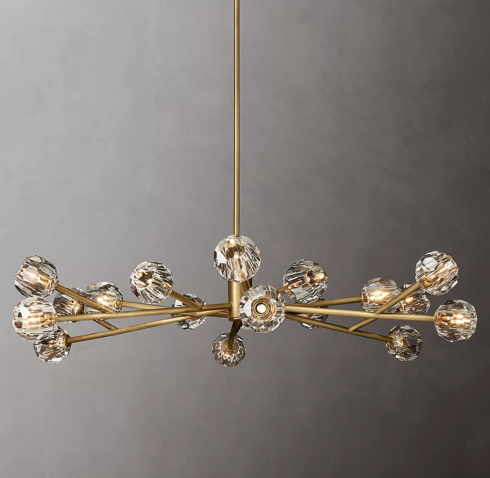 | Each exquisite K9 crystal ball combines high-quality copper elements to show luxury. Each K9 crystal ball is carefully cut by workers with many years of manual experience. Ceilings and fittings are made of solid brass. The irregular cut surface of the crystal ball reflects a lot of warm light. It highlights the elegance and temperament of this chandelier. |