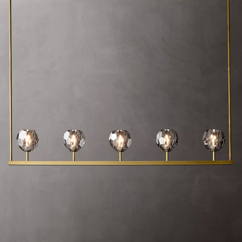 | Each exquisite K9 crystal ball combines high-quality copper elements to show luxury. Each K9 crystal ball is carefully cut by workers with many years of manual experience. Ceilings and fittings are made of solid brass. The irregular cut surface of the crystal ball reflects a lot of warm light. It highlights the elegance and temperament of this chandelier. |