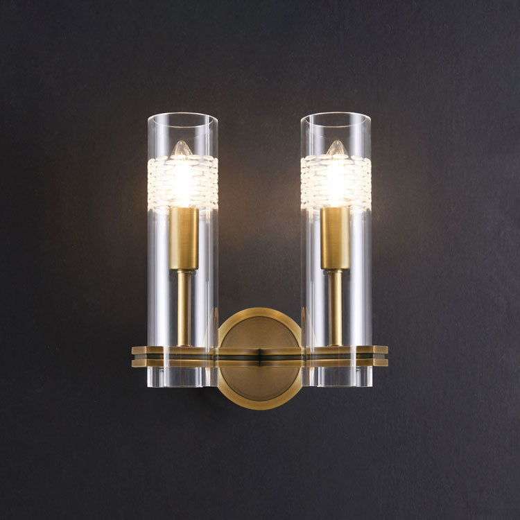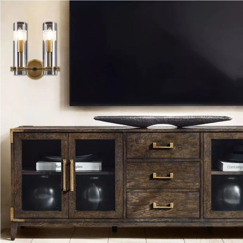| The Sconce is machined by hand from solid brass. The rectangular arm provides the structure for the lead crystal shade to sit. This shade is hand worked on a diamond wheel to achieve its detail. |