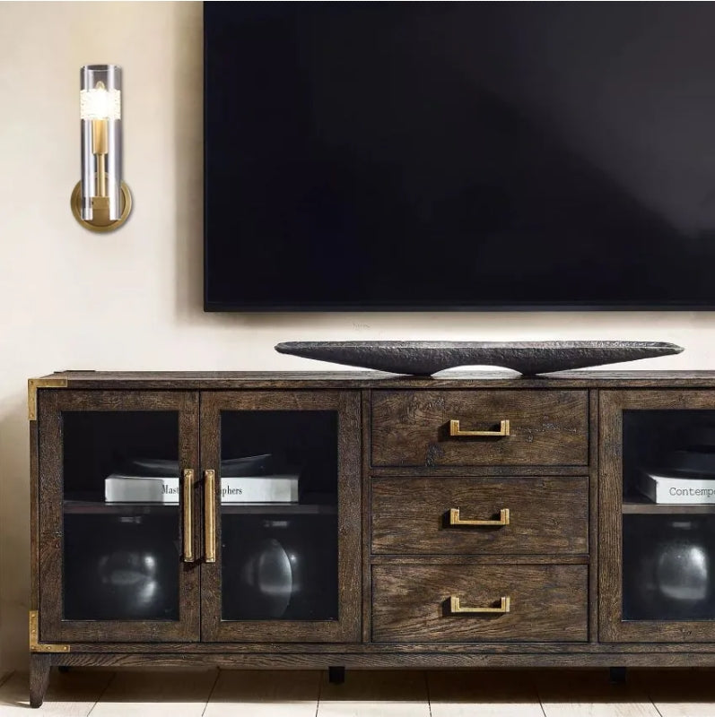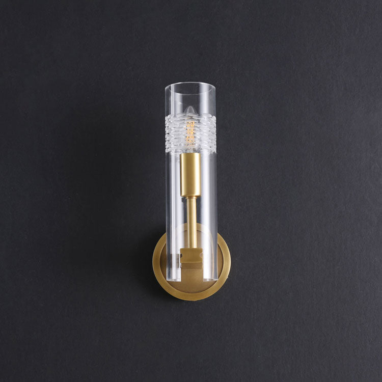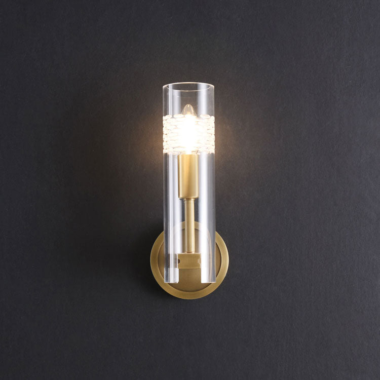 | The Sconce is machined by hand from solid brass. The rectangular arm provides the structure for the lead crystal shade to sit. This shade is hand worked on a diamond wheel to achieve its detail. |