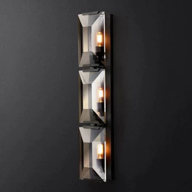 | Iron frame construction.Fitted with a rectangular crystal glass prism. secured at top and bottom with bold metal mounts |