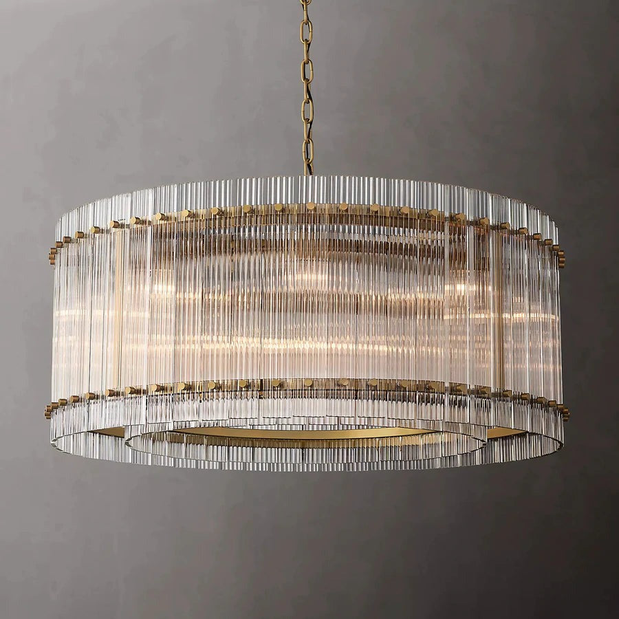 The Marcia One Layer Contemporary Round Chandelier is the modern design made of a metal frame and fluted glass panels. The handmade glasses are transparent and pure. gives a sufficient and warm light effect. |