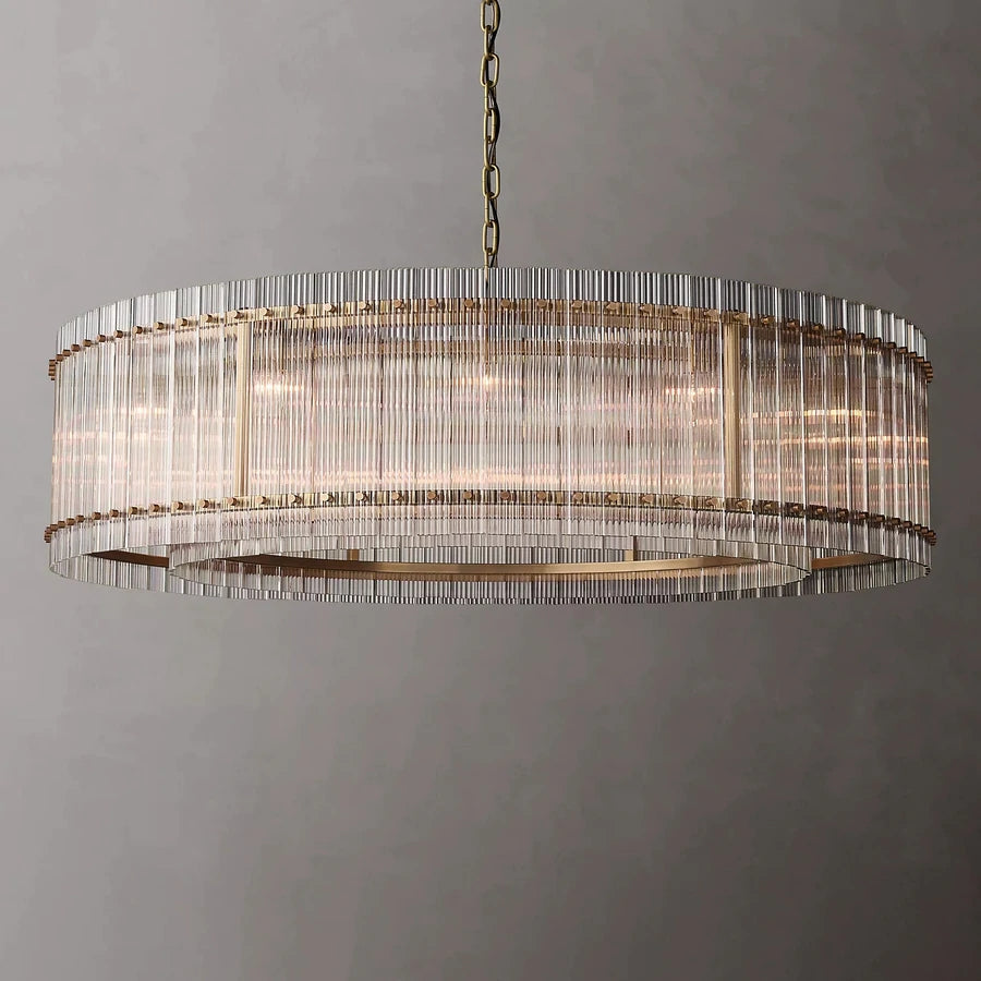 | The Marcia One Layer Contemporary Round Chandelier is the modern design made of a metal frame and fluted glass panels. The handmade glasses are transparent and pure. gives a sufficient and warm light effect. |