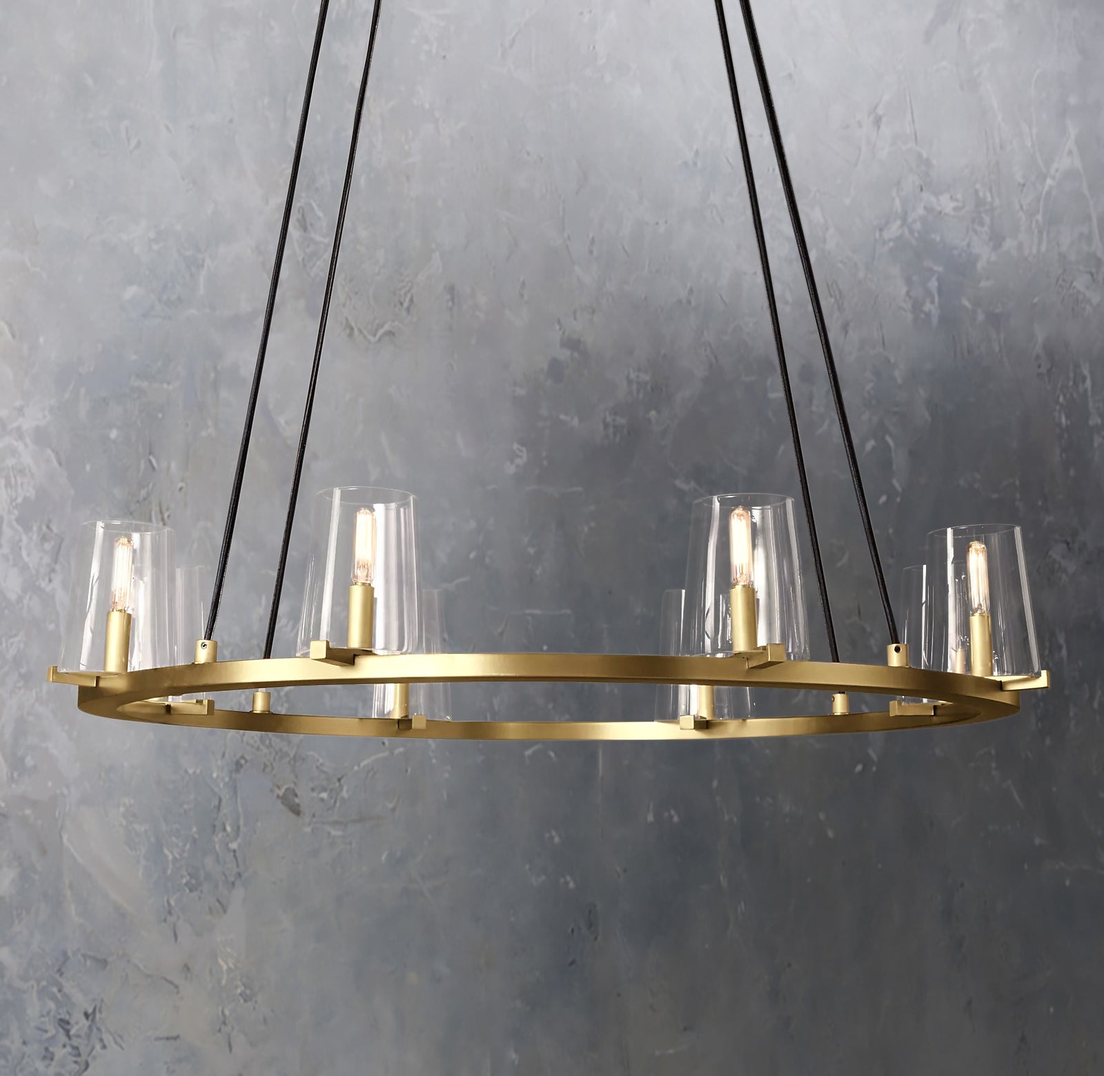 Crafted of solid brass .Hand-blown clear glass tapered shade |